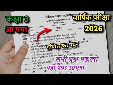 कक्षा 3 गणित का पेपर वार्षिक परीक्षा 2026 kaksha 3 ganit ka paper varshik exam class 3rd maths paper
