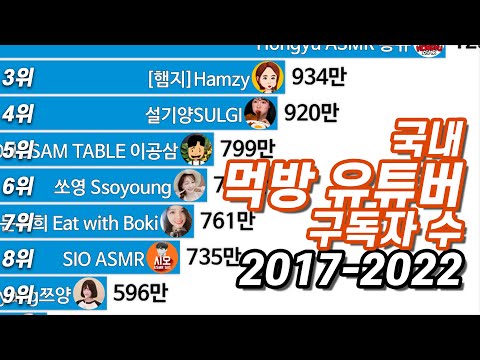 국내 먹방 유튜버 구독자 수 변화 (2017-2022)