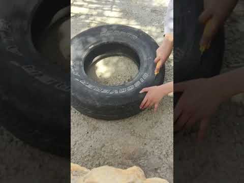 نافورة من اطارات السيارات والحجارة مع إضاءة Making a fountain from a car tire